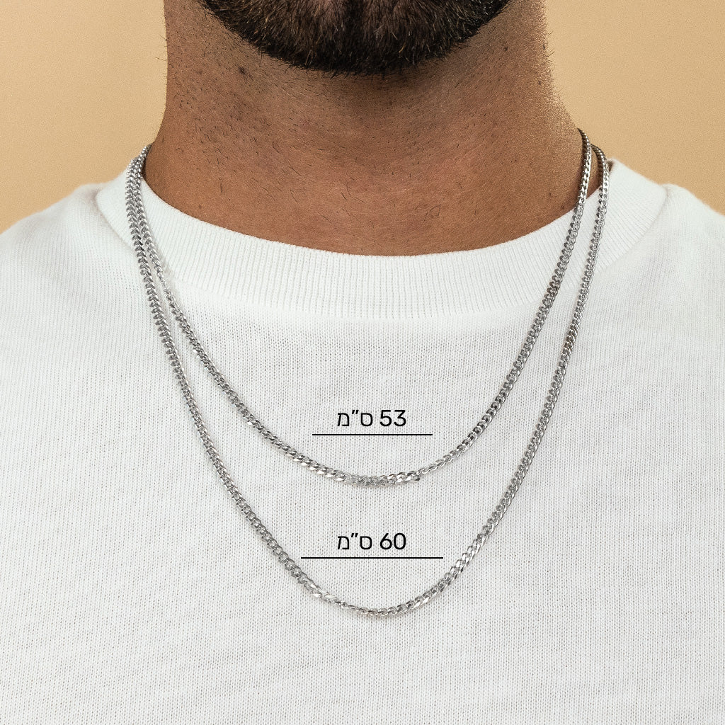 שרשרת גורמט כסף 3 מ״מ עם תווית חריטה